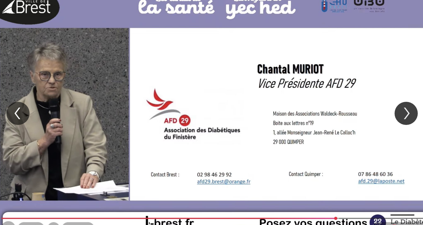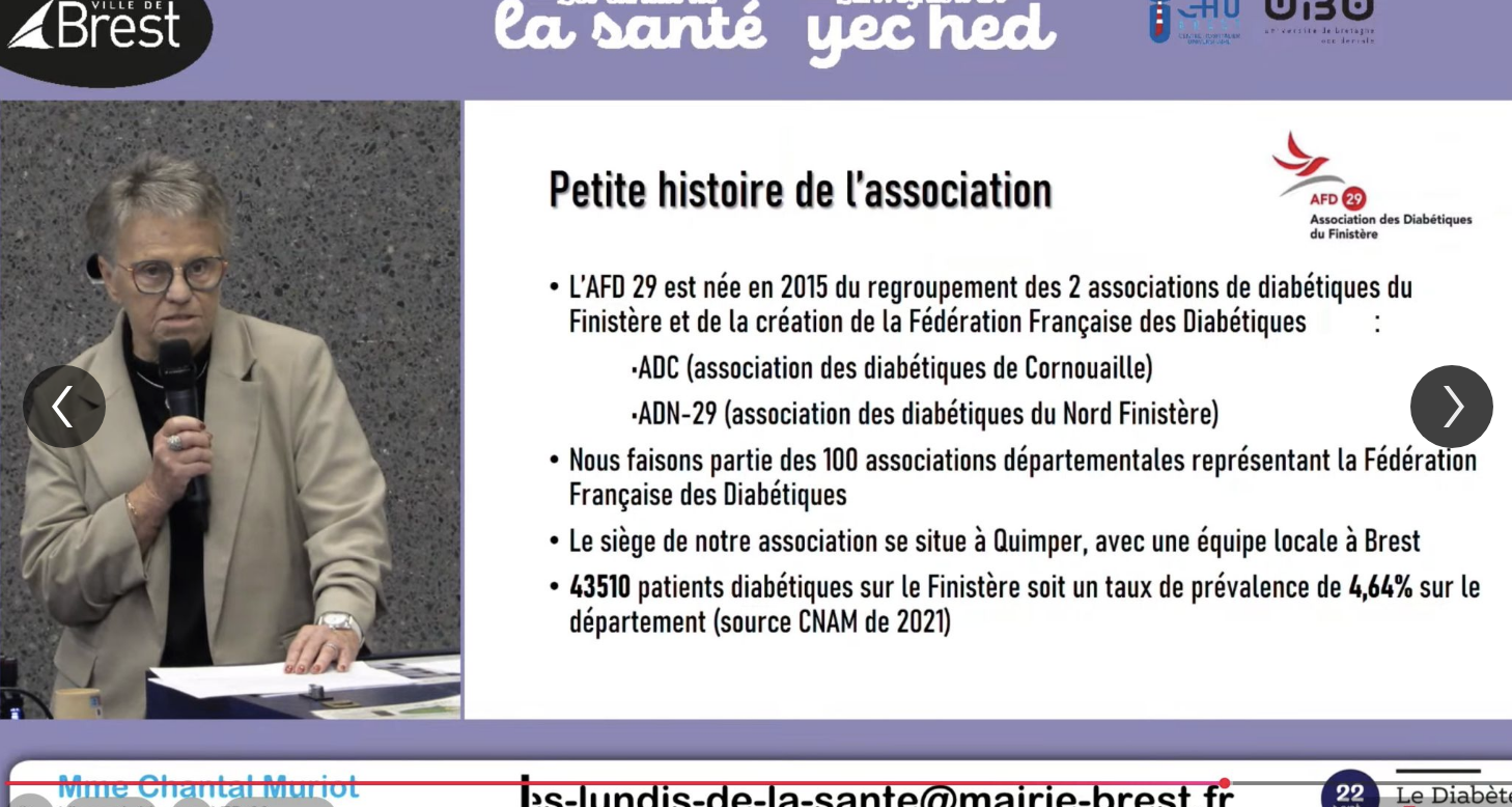 Merci à Chantal Muriot notre vice-présidente pour la présentation de l'Association des Diabétiques du Finistère ( AFD 29 )
